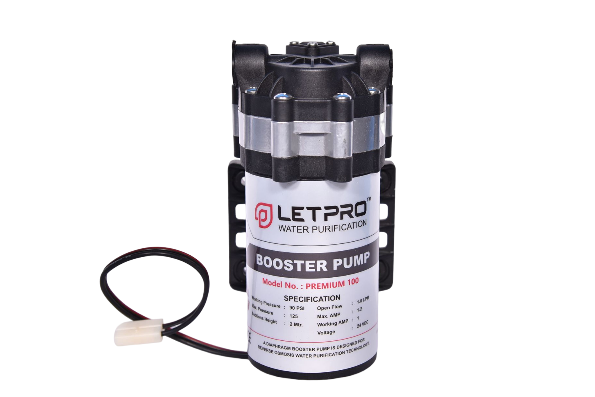 Meet the Letpro Premium 100 Booster Pump – the quiet, reliable fix for homes that refuse to compromise on water flow. Designed for stubborn 20 PSI inlet pressure, this 24V DC powerhouse ramps it up to a steady 90 PSI, ensuring your RO system fills glasses, pots, and tanks 1.8 liters per minute – no more staring at a trickle!